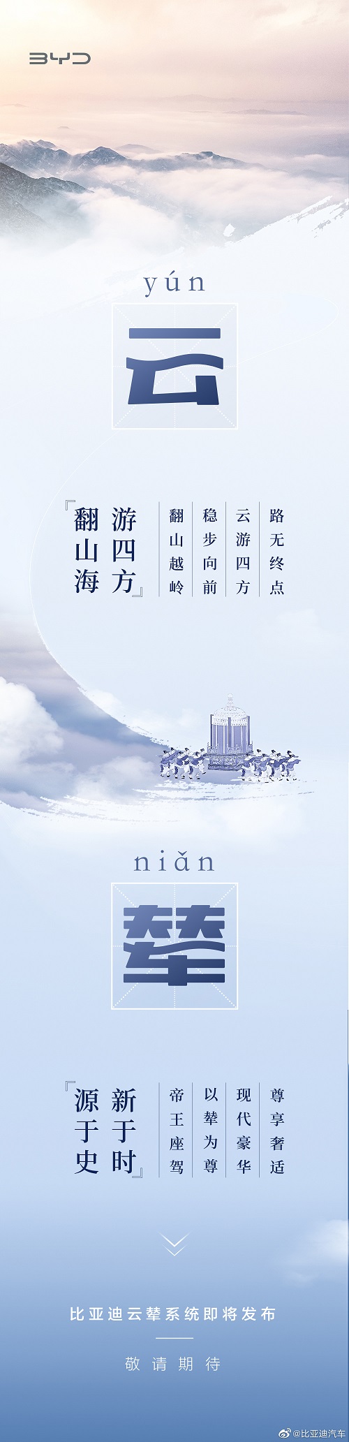 今日,比亚迪宣布全新的云辇系统即将发布。实际上,比亚迪前几天刚刚注册了“云辇(yún niǎn)”商标。据相关人士透露,该商标或为比亚迪一项全新技术,有关新能源汽车垂向智能融合,是比亚迪全栈自研的重磅技术。