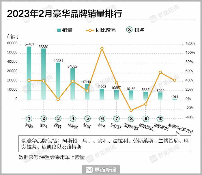 近日,保监会2月乘用车上险量数据出炉,其中豪华品牌整体增长势头明显。