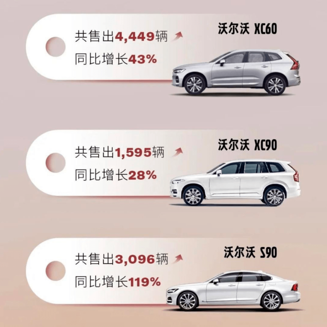 在刚刚过去的上海车展上,沃尔沃汽车以一句“我们会的,新势力十年都学不会”而引发关注。而4月的销量数据也给了沃尔沃汽车放出豪言的底气。沃尔沃汽车中国大陆4月销量12485辆,同比增长46.3%,环比增长8.1%。其中沃尔沃XC60共售出4449辆,同比增长43%。沃尔沃XC90售出1595辆,同比增长28%。沃尔沃S90共售出3096辆,同比增长119%。这样的成绩为沃尔沃下半年推出EX90旗舰电动车打好了基础。