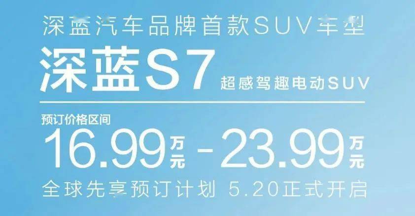 在5月20日,深蓝S7正式开启预售,16.99万元至23.99万元这一极具“杀伤力”的预售价,也让人更加期待它未来上市后的表现。相信在突出产品力的帮助下,深蓝S7也一定能够在竞争激烈的市场中,为深蓝汽车开启新的格局。