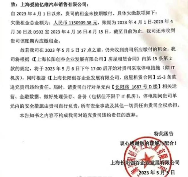 不仅如此,由于没有资金缴纳办公室房租,爱驰汽车位于上海长阳创谷的办公室已经被业主收回,爱驰汽车要求员工在家办公。此外,爱驰汽车App已经无法正常使用,对于已购车车主的用车和售后都将产生不小的影响。