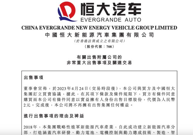 为加大融资机率,4月24日晚间,中国恒大和恒大汽车在港交所同时发布公告,以2元的价格将恒大汽车旗下47个住宅及物业发展项目卖给了恒大集团。而这47个住宅及物业发展项目,最早可追溯到恒大汽车发展早期,当时恒大集团为推动恒大汽车上市,将恒大健康集团旗下的养生地产项目打包注入了恒大汽车,港股上市公司恒大健康也因此改名为恒大汽车。