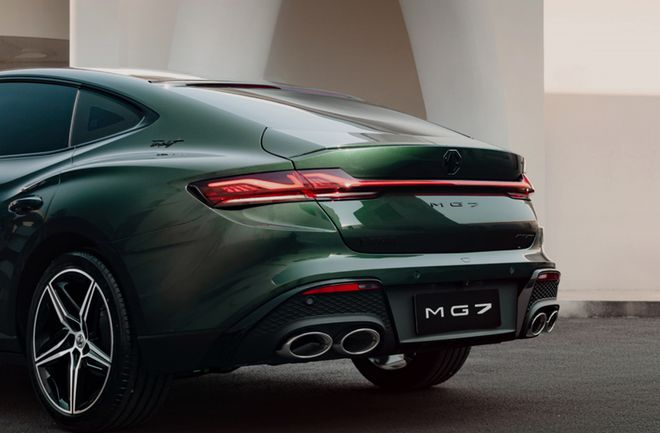 从车尾来看,MG7的设计令人肾上腺素飙升!掀背式后备箱,颜值和功能性双管齐下。自适应三段式电动尾翼,车速大于100km/h时,尾翼即可电动伸展打开,同价位少有。此外MG7拥有同级唯一配备电子可变阀门的“真”双边共四出排气,浑厚低沉的排气声浪无需改装即可拥有。