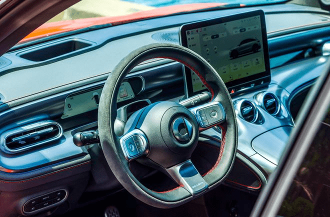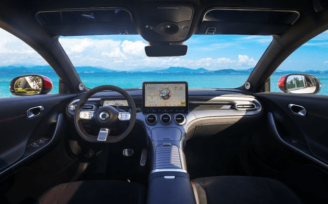 全液晶仪表盘配合12.8英寸悬浮式中控大屏,让其科技感不输于造车新势力们。一体式环抱轿跑座椅支持前排座椅加热、主驾驶座椅记忆、迎宾功能。1.6 ㎡超大尺寸全景天幕带来开阔视野与浪漫氛围,采用夹层镀银工艺可阻隔99%紫外线,不怕太阳暴晒。64色双区智能氛围灯带音乐律动功能,配合Beats 13扬声器音响系统,为全新smart精灵#3带来了更具浪漫感觉的视听盛宴。