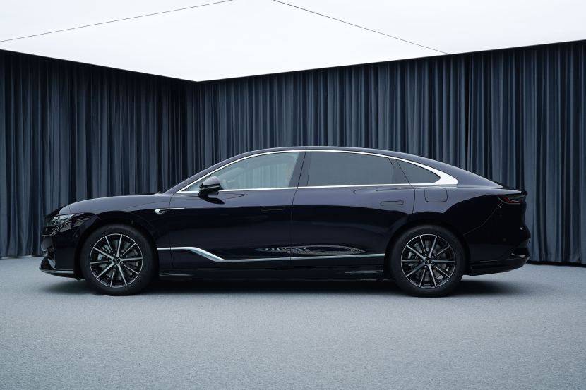 侧身岚图追光PHEV版整车线条优雅修长,溜背式车顶设计很有传统掀背四门跑车的韵味,有着较强的运动感。车门下方则设计有阶梯式的线条、隐藏式门把手和多处镀铬元素点缀,细节更加精致。车尾的造型相对更加传统,溜背式车顶在尾部形成两道宽厚的肩线,提升力量感。而尾部配备的可升降电动尾翼以及高位刹车灯提升了车尾的运动感,再配合半封闭式的低风阻轮圈,将电动化属性展现的淋漓尽致。